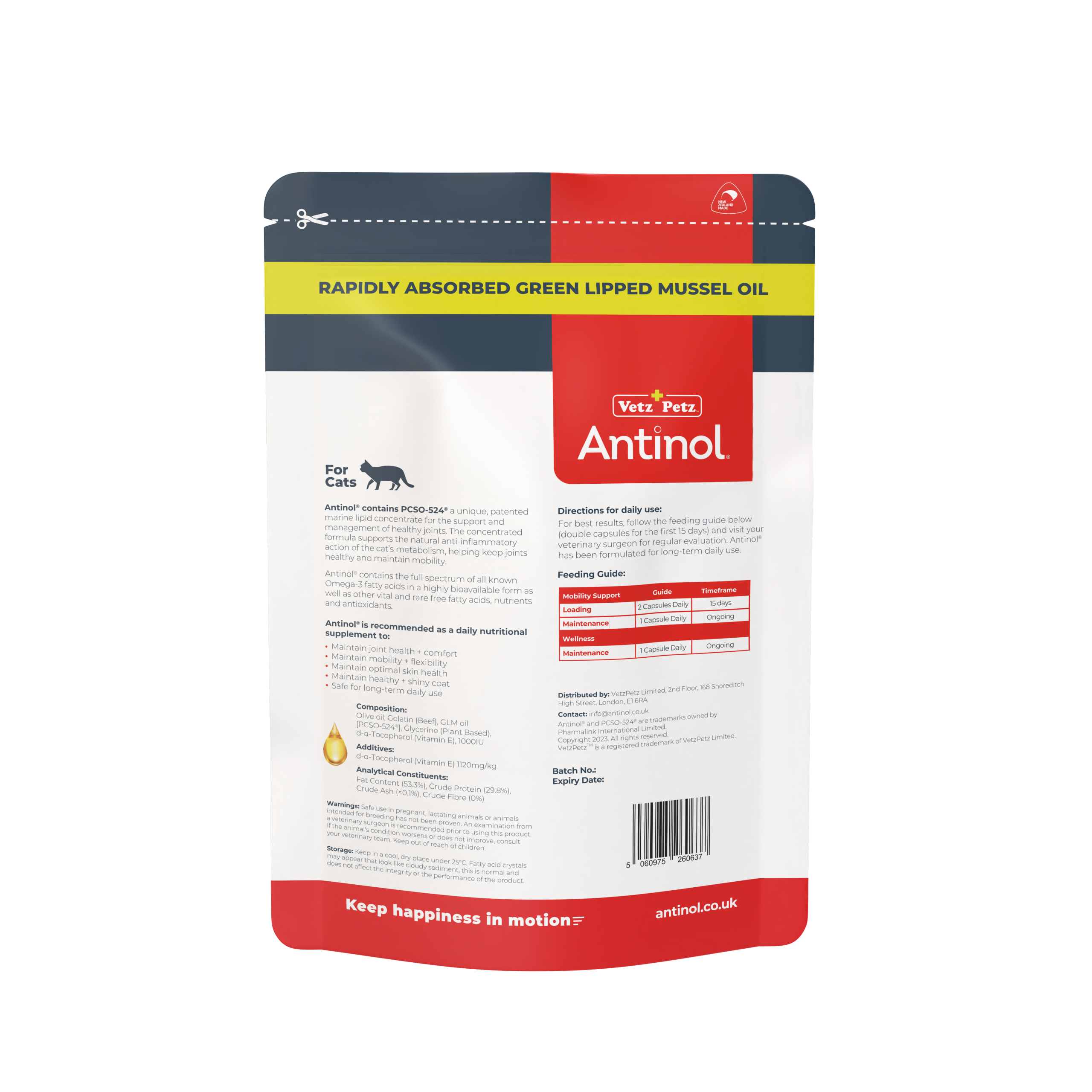 Antinol® Joint Care Pro is a powerful, rapidly absorbed joint, skin and coat supplement. A concentrated green-lipped mussel oil, it contains all known omega-3s, supporting your dog’s joint health and performance whilst maintaining healthy skin and a shiny coat. 100% natural, safe for long-term use and backed by over 25 years of scientific research.